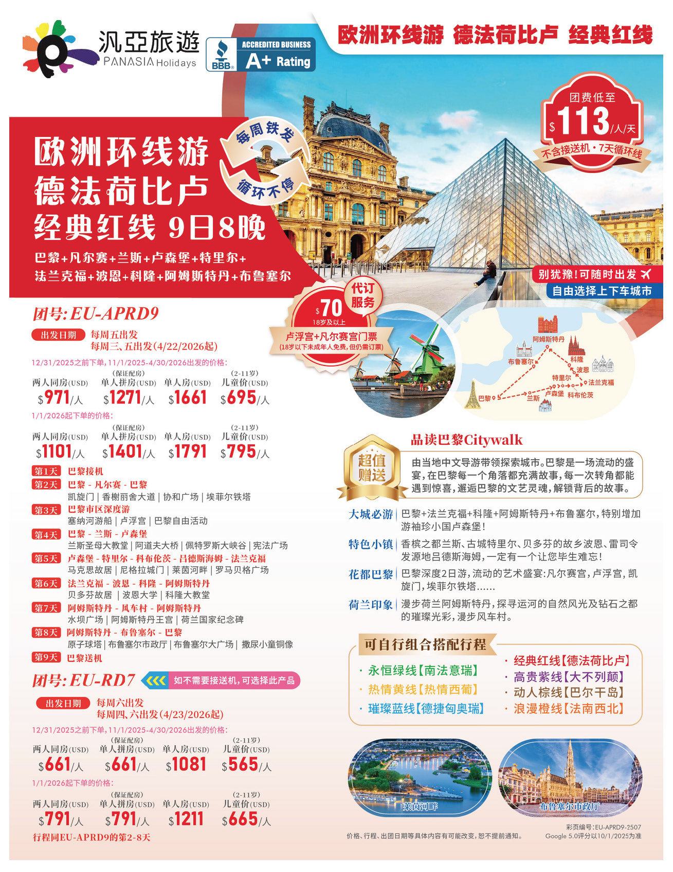 歐洲環線遊 德法荷比盧 經典紅線9日8晚 [JT]