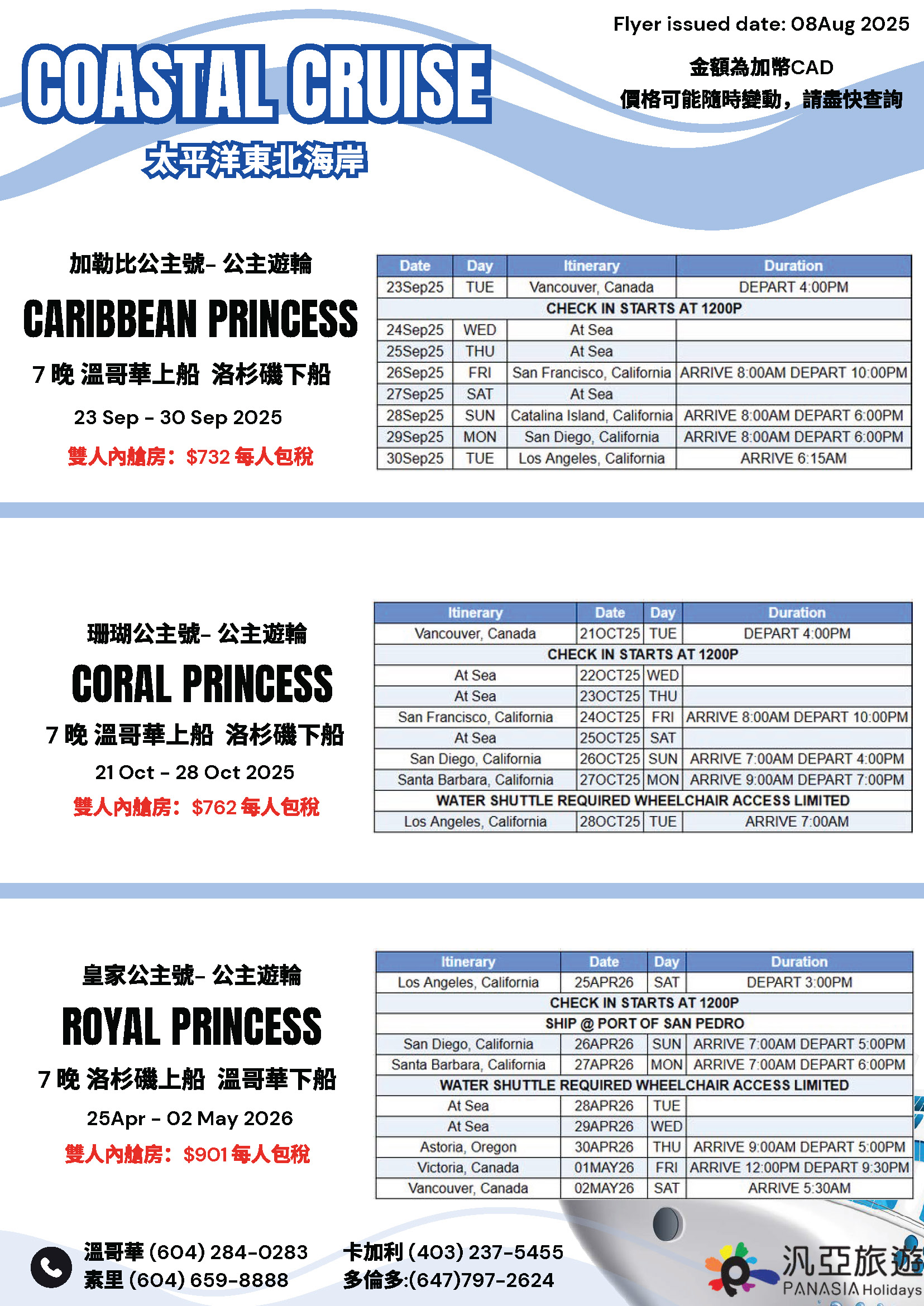 預訂此旅行團請致電汎亞旅遊,請勿網站下單