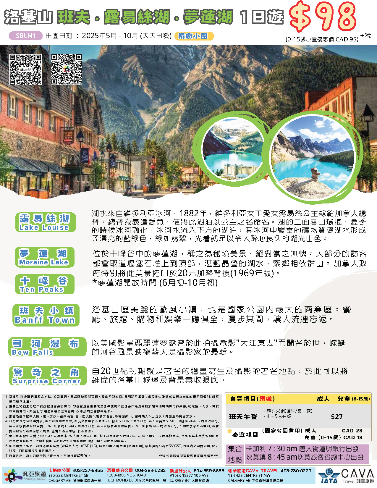 洛基山班夫+露易絲湖+夢蓮湖1日遊 [SBLM1]