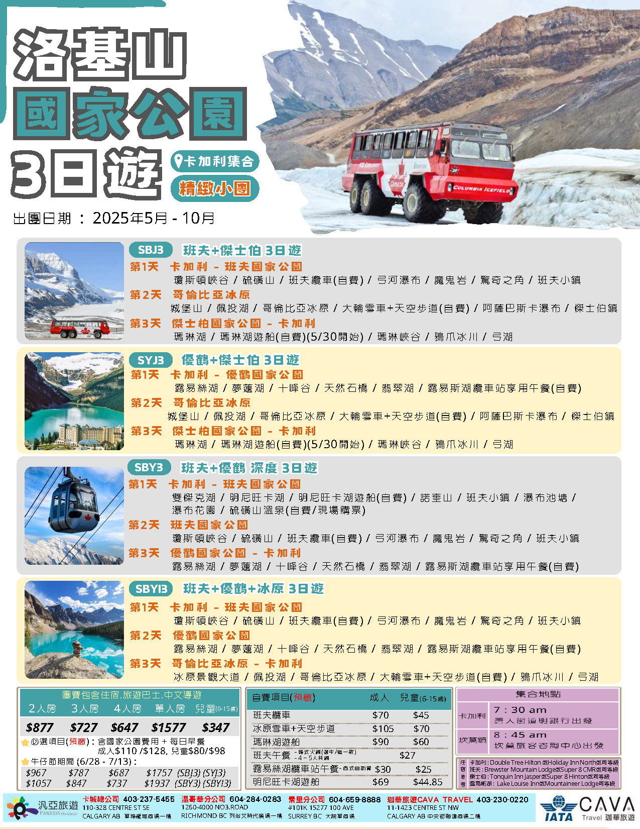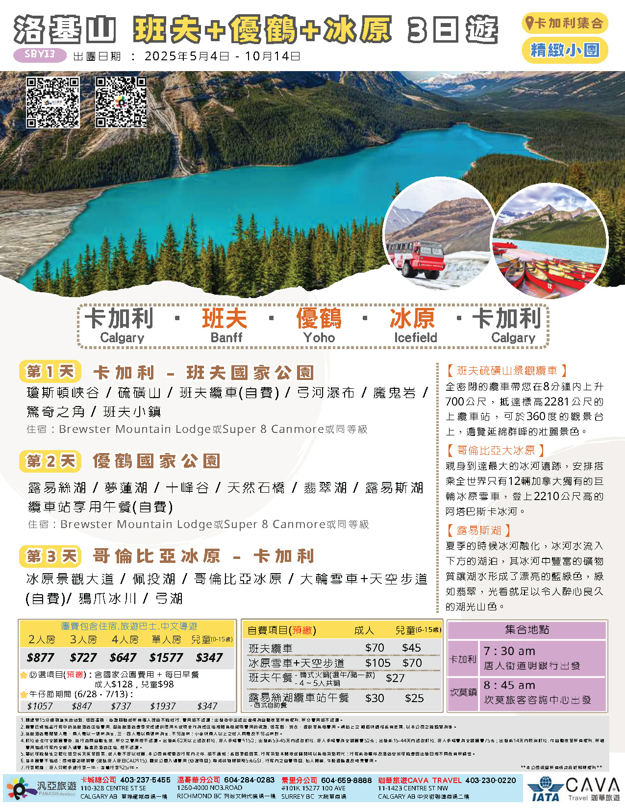 洛基山班夫+優鶴+冰原3日遊 [SBYI3]