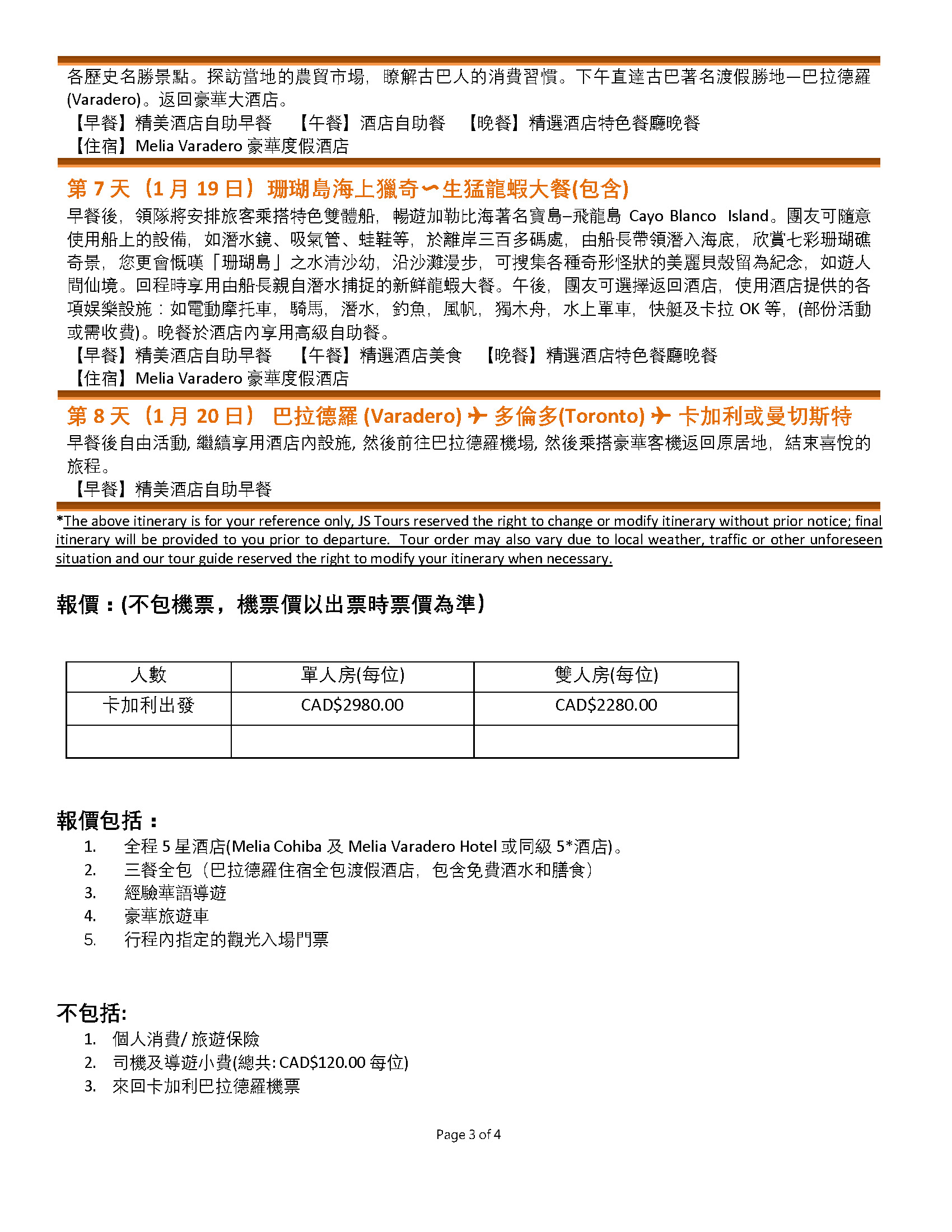 費用不包含 | 國際機票 |