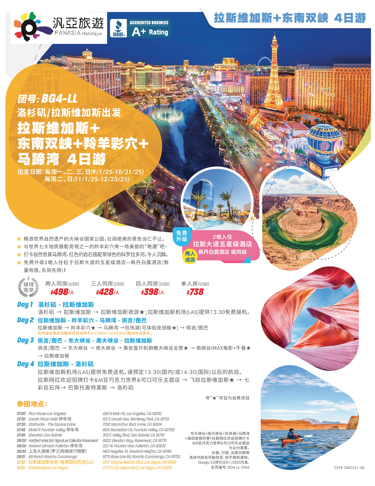 拉斯維加斯+東南雙峽4日遊 [JT-BG4-LL]