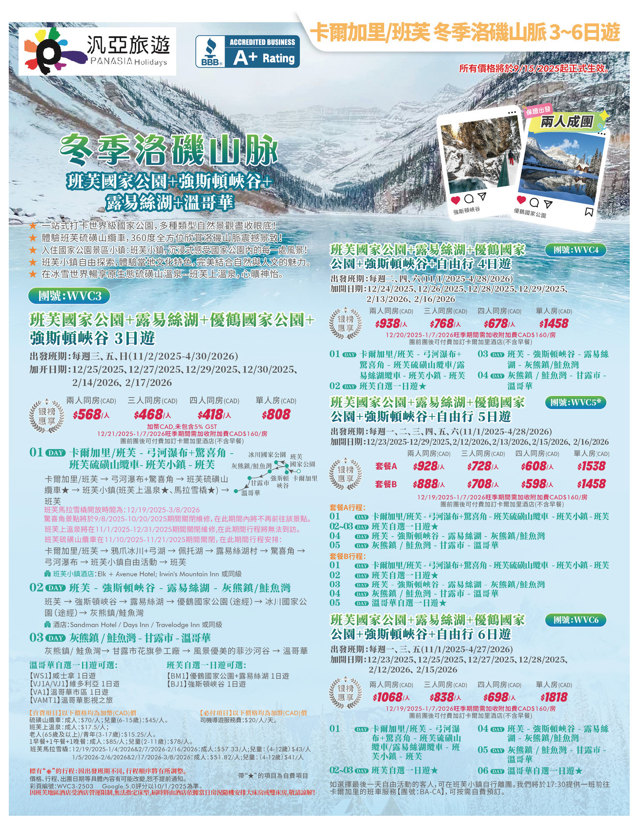 【冬季卡進溫出】班芙國家公園+強斯頓峽谷+露易絲湖+溫哥華3-5日 [JT]