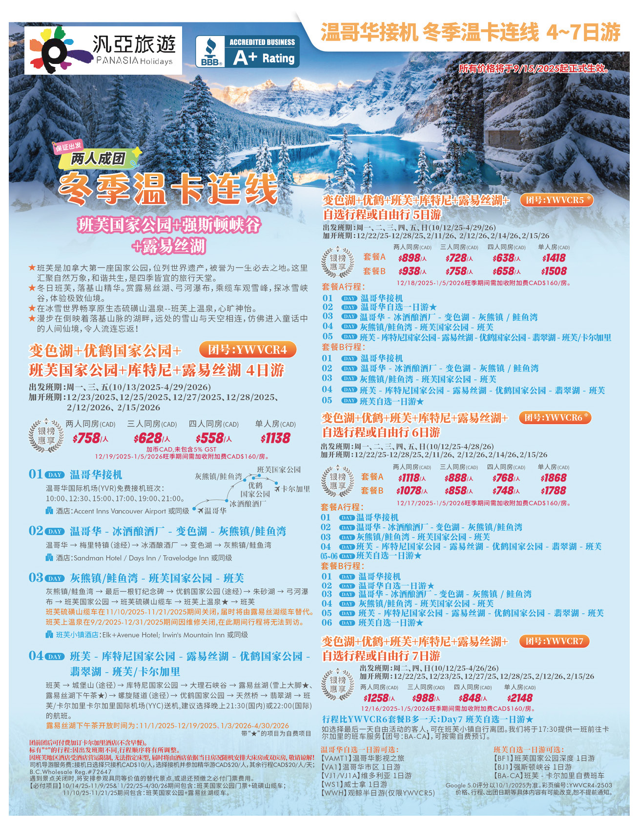 (雪花飛舞的冬天)提供接送機服務、深度遊覽洛磯山脈國家公園,欣賞仙境般的美麗碧綠湖景,感受加拿大超自然山水之靈氣、日月之精華