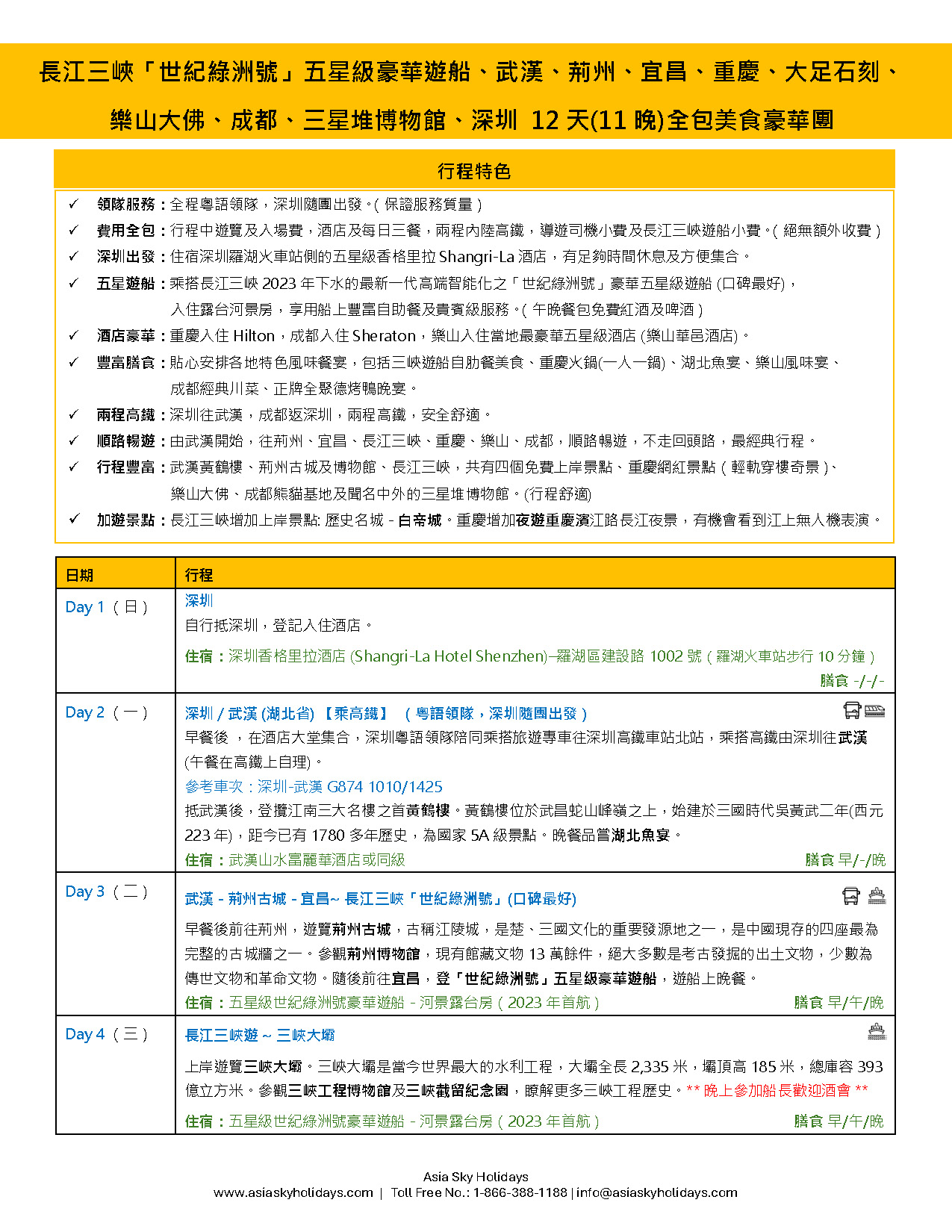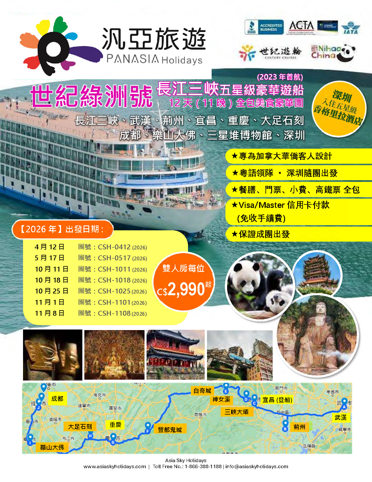 2026世紀綠洲號 (Century Oasis) 長江三峽12天美食團 [AS]