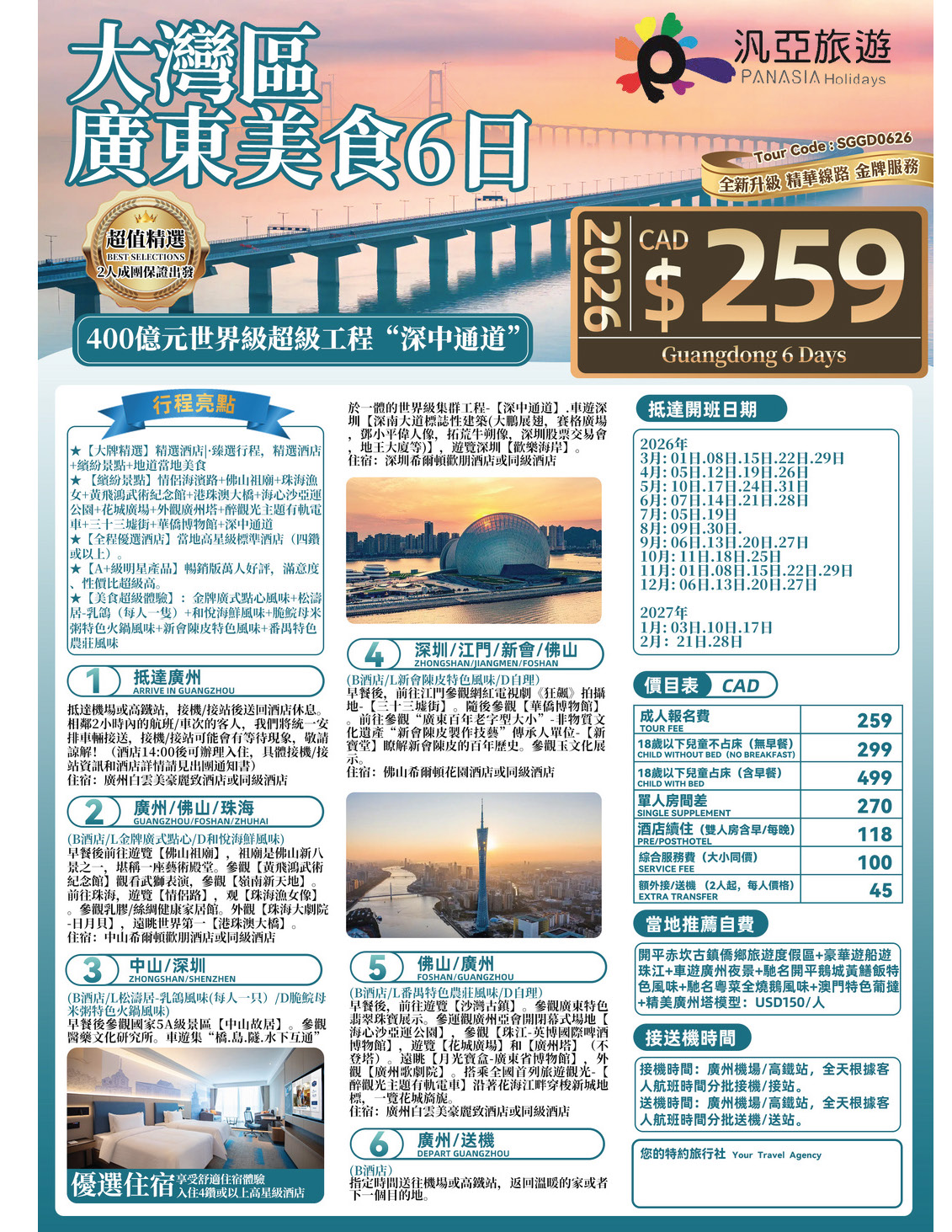 【二人成團,保證出發】2026年大灣區、廣東美食6日[CT]