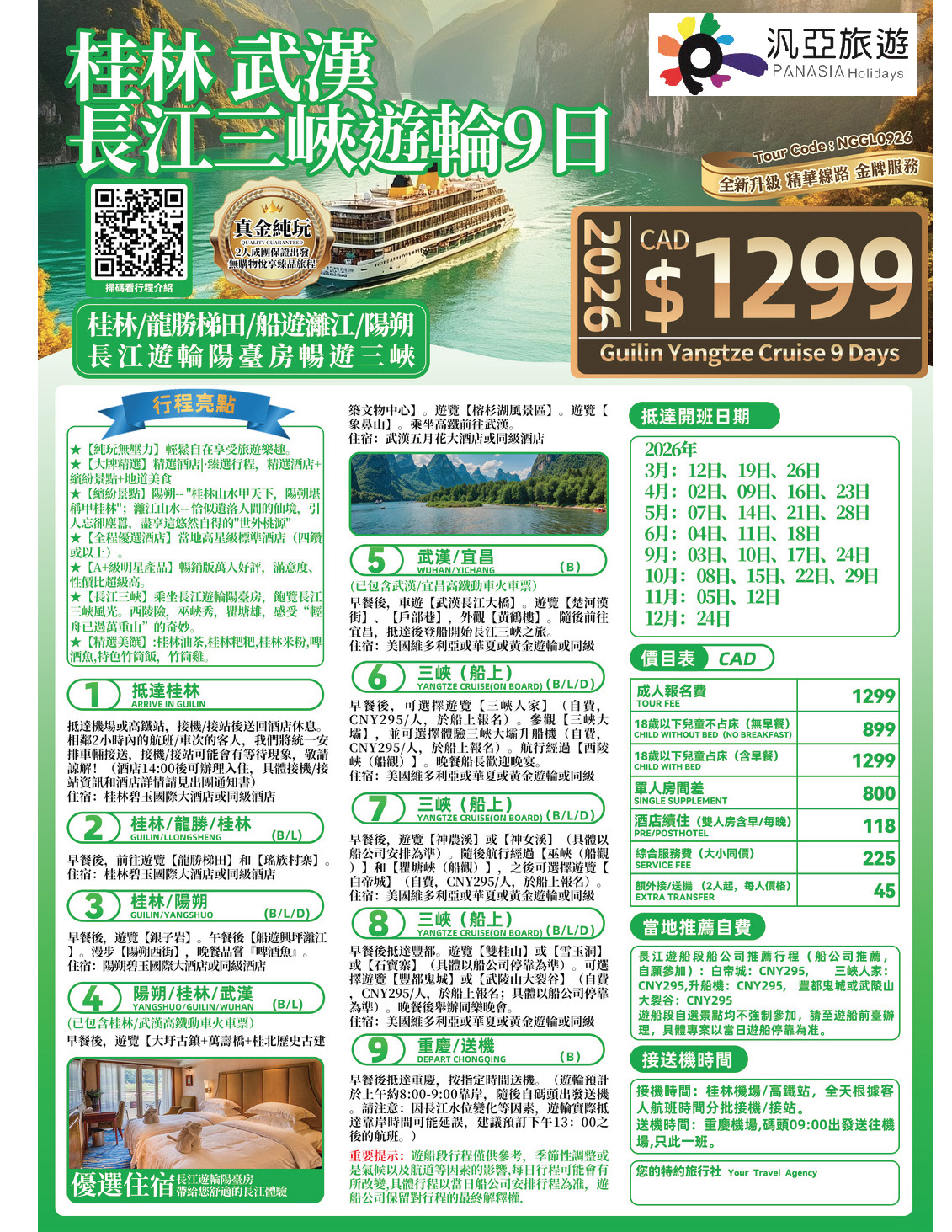 2026年桂林 武漢 長江三峽遊輪9日[CT]