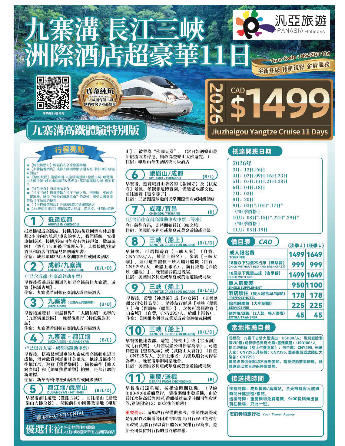2026年九寨溝 長江三峽 洲際酒店超豪華11日[CT]