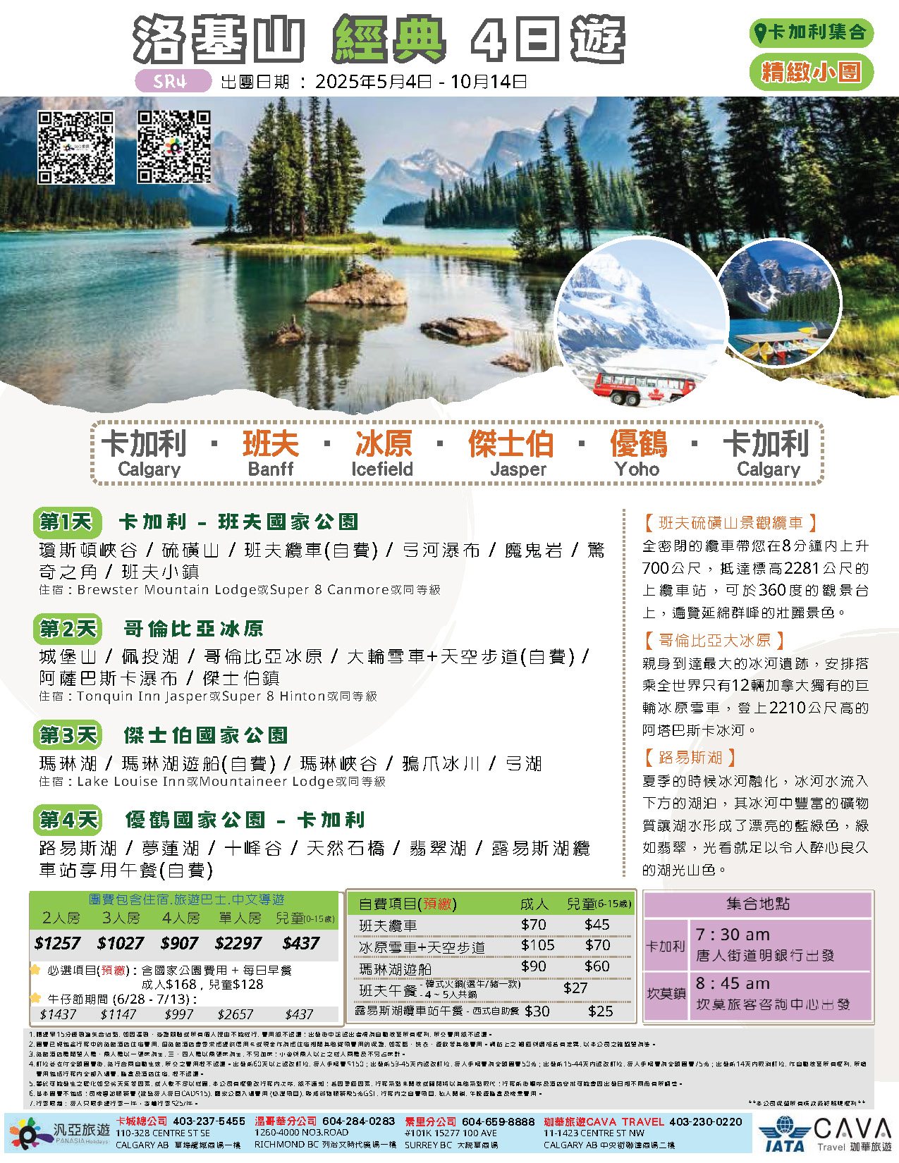 (春光明媚的夏天)提供接送機服務、深度遊覽洛磯山脈國家公園,欣賞仙境般的美麗碧綠湖景,感受加拿大超自然山水之靈氣、日月之精華