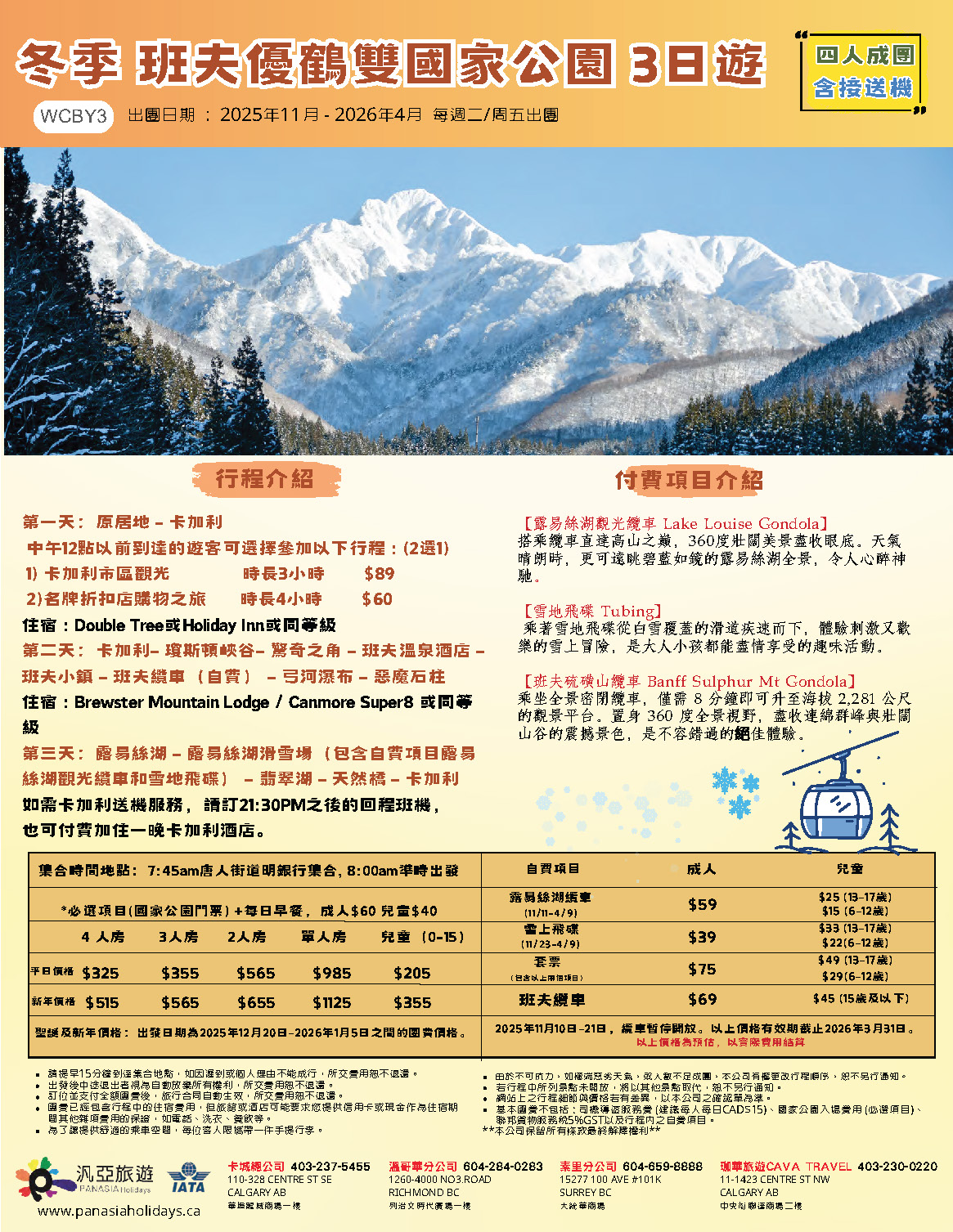 (雪花飛舞的冬天)提供洛磯山脈最專業的導覽,帶領每一位旅客欣賞加拿大最珍貴、壯麗雄偉的天然美景