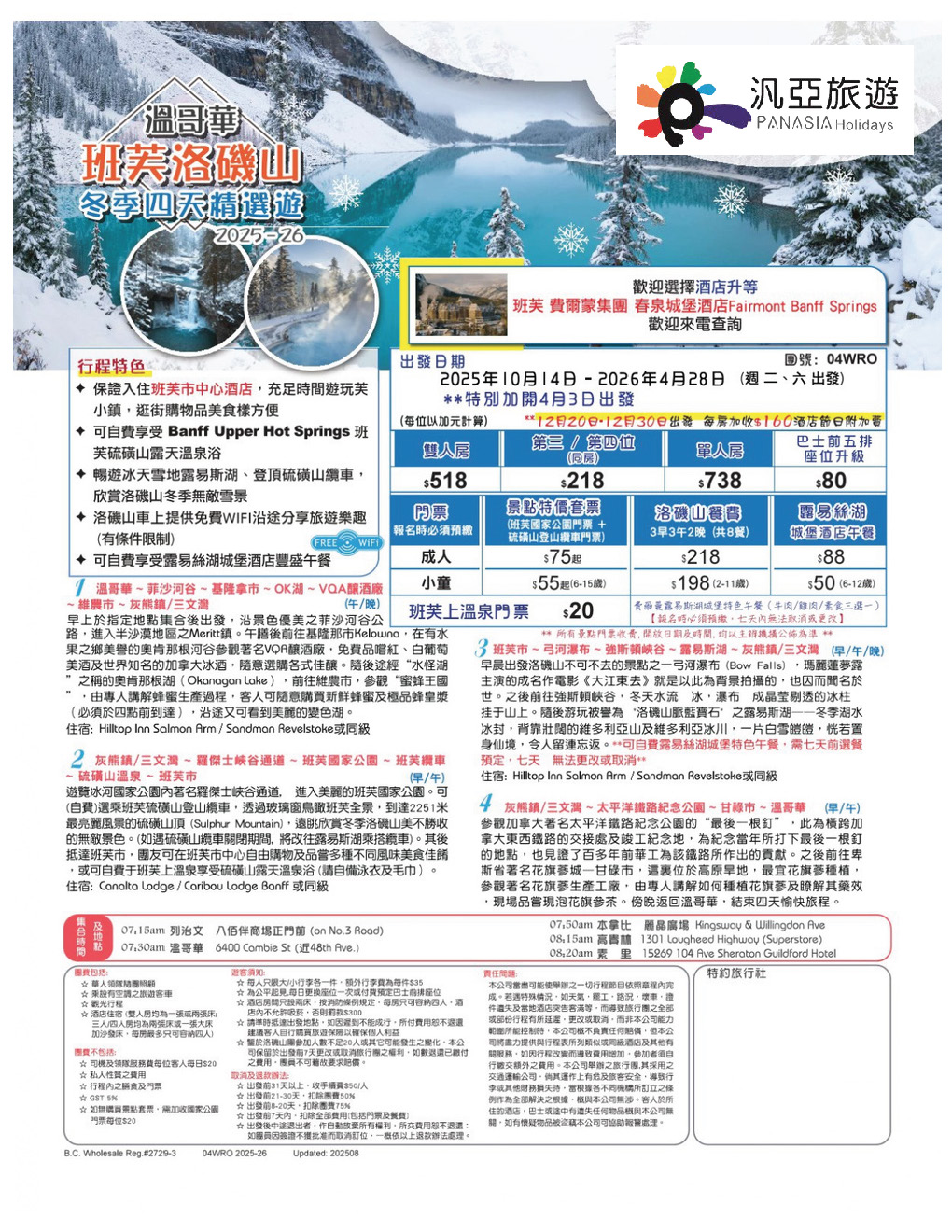 預訂此旅行團請致電汎亞旅遊,請勿網站下單